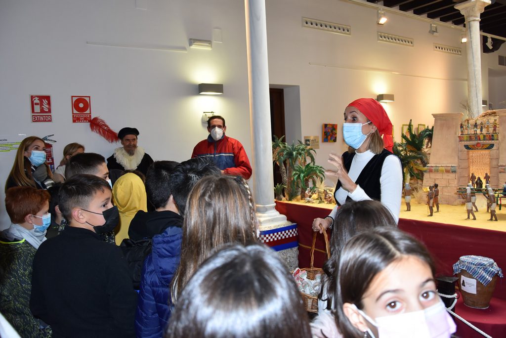 Además, y aprovechando que se encuentra instalado en el Patio del Museo el Belén de la Asociación de Belenistas “La Encarnación”, los escolares lo visitan acompañados por el personaje de una pastorcilla que recupera el recuerdo de algunas de las tradiciones de estas fechas.