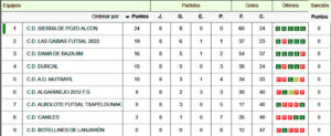 Finalizada la primera jornada de la segunda vuelta, el CD Dama de Baza vuelve a la segunda posición de la clasificación, a la espera de que juegue Las Gabias en Algarinejo, lo que será un partido duro para ambos equipos. En cuanto al C.D. Dama de Baza volverá a jugar en casa su próximo partido, aún pendiente de fecha y hora.