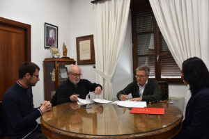 Ayuntamiento y Federación de Cofradías firman un convenio para la promoción de la Semana Santa como atractivo turístico. El alcalde de Baza, Manolo Gavilán, y el coordinador de la Federación de Cofradías y Hermandades de la Semana Santa de Baza, Manuel Millán, han firmado un convenio que tiene como fin la promoción de la Semana Santa de Baza como atractivo turístico a través de la mejora en su organización y desarrollo.