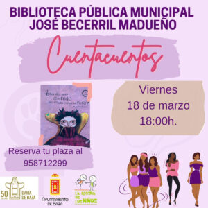 Además, este cuentacuentos, que ofrece este viernes la Biblioteca Pública Municipal de Baza “José Becerril Madueño”, forma parte de los actos programados en torno a la igualdad que nos propone este mes de marzo, formando parte del marco de las actividades del Día de la Mujer que se vienen celebrando en nuestra ciudad.