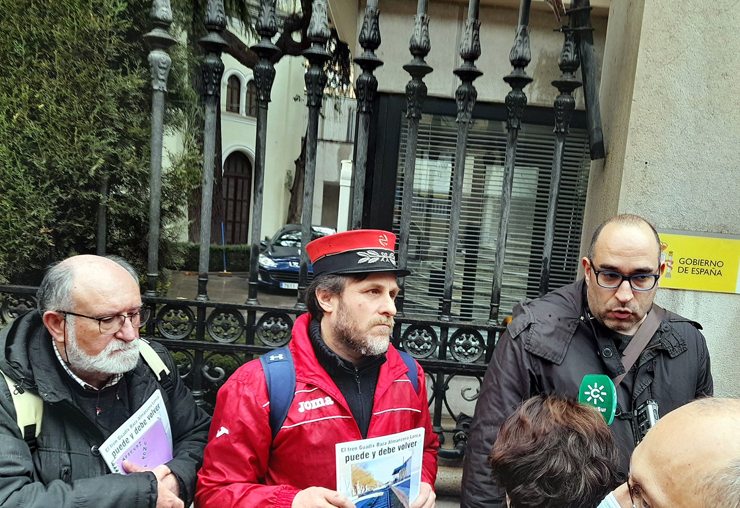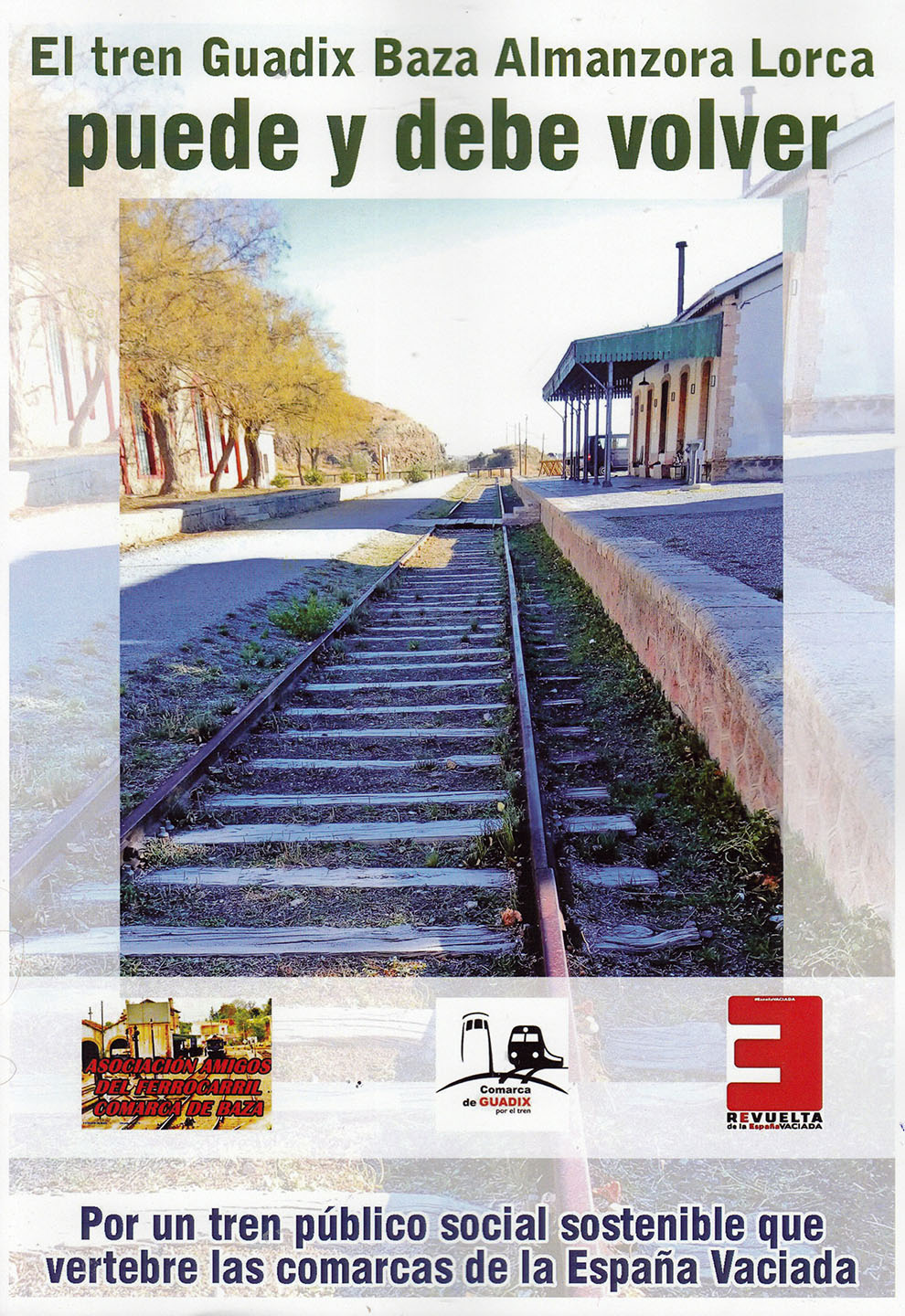 Presentan el libro “El tren Guadix Baza Almanzora Lorca puede y debe volver” y reclaman al Gobierno un ferrocarril público social que vertebre las comarcas vaciadas del sureste. Los colectivos ferroviarios Amigos del Ferrocarril Comarca de Baza, Comarca de Guadix por el Tren y Granada por el Tren han presentado, en la entrada de la Subdelegación del Gobierno en Granada, la publicación “El tren Guadix Baza Almanzora Lorca puede y debe volver. Por un tren público social sostenible que vertebre las comarcas de la España Vaciada”, explicitando la necesidad de reapertura de dicho ramal ferroviario para todo el sureste peninsular.