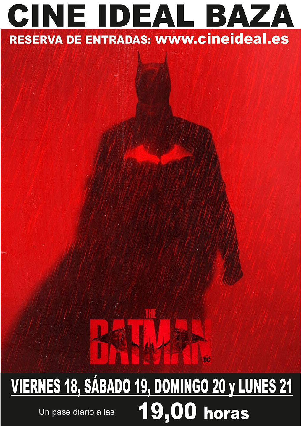 El Cine Ideal Baza ofrece este fin de semana una nueva versión del Caballero Oscuro…The Batman. Una película que llega a la gran pantalla de la calle Alamillos, en la que se podrá ver desde el viernes 18 al lunes 21 de marzo, en un único pase diario que tendrá lugar a las siete de la tarde.
