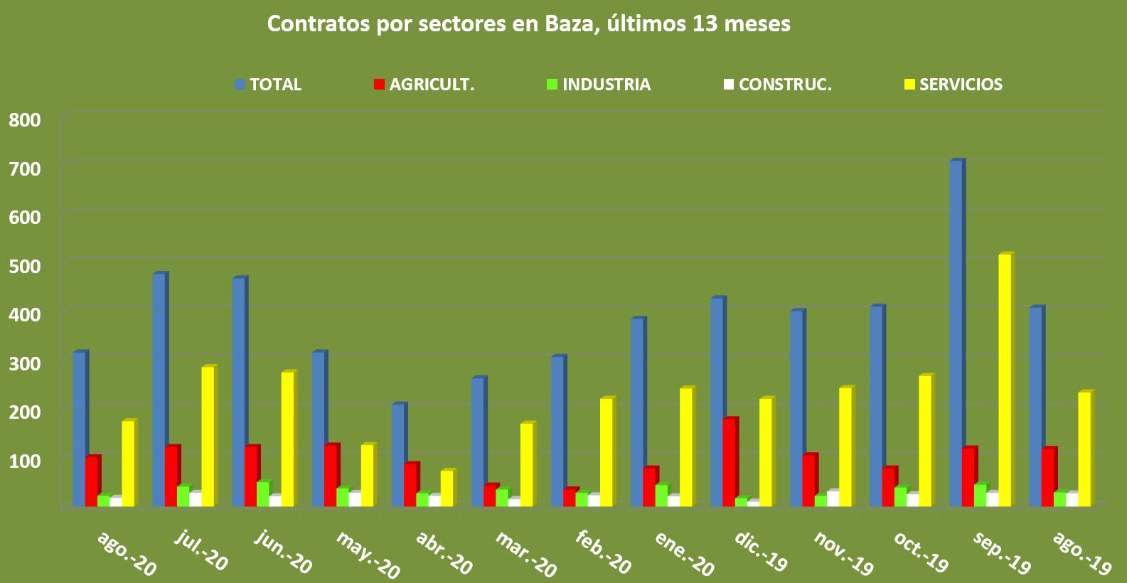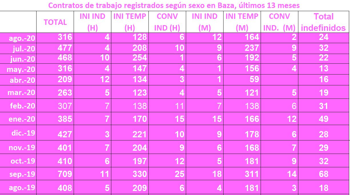 Sí que disminuyó en agosto la cifra de contratos suscritos, pasando de 477 a 316, ofreciendo una situación de notable disminución, algo que tampoco desentona en las cifras que se están produciendo este año, a pesar de lo que se han sumado otras 24 contrataciones indefinidas a favor de 10 hombres y 14 mujeres.