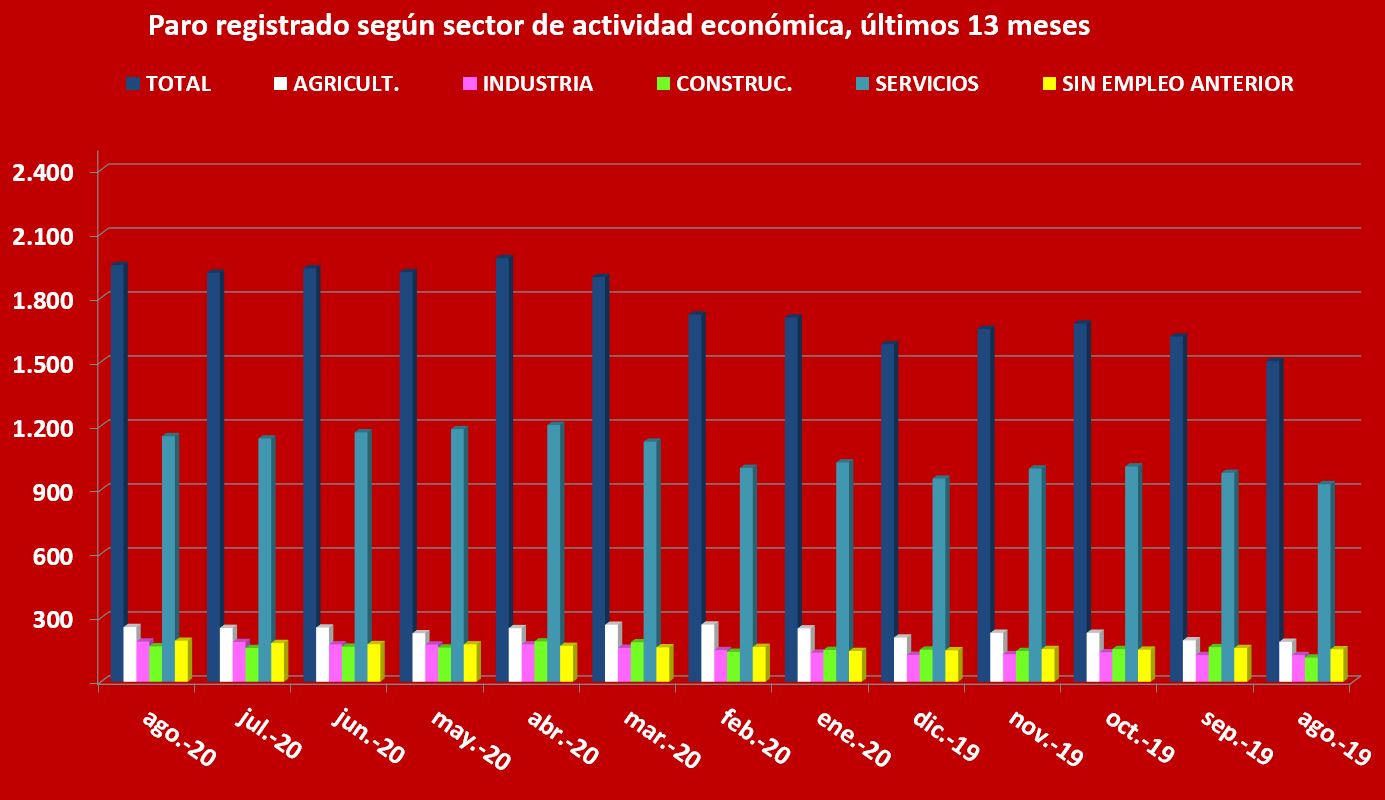 Este año, sin embargo, la llegada del Covid-19 ha sido la verdadera protagonista en todos los ámbitos y, por supuesto, en el laboral, donde a pesar de todas las medidas tomadas para tratar de frenar la situación, las estadísticas indican una subida de las cifras de parados, que se inició en marzo y que este mes se sitúan a menos de medio centenar de las dos mil personas.