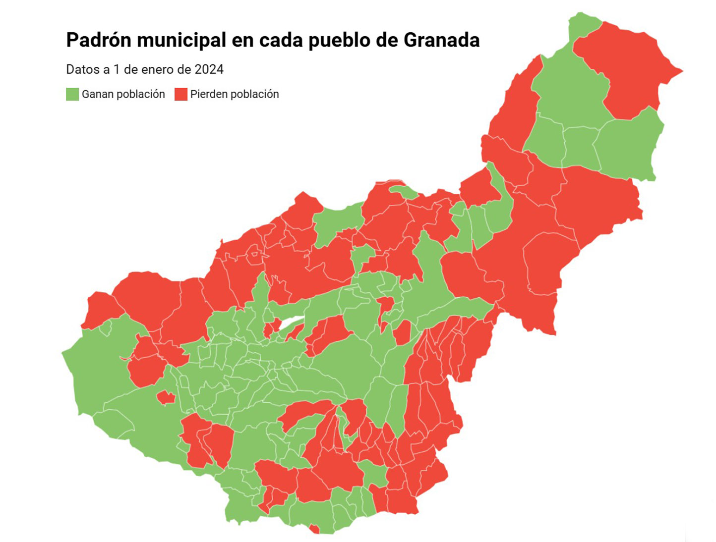 En todo caso, el padrón en la provincia de Granada ha crecido en 6.954 personas a fecha del 1 de enero de 2024, un aumento que se refleja en 89 de los 174 municipios de la provincia, aunque los datos no tienen igual trascendencia en las diferentes localidades.