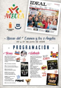 El barrio del Carmen y Los Ángeles se prepara para un fin de semana de fiesta con la verbena de AVECLA. El Parque de la Constitución se convertirá este fin de semana en el epicentro de la celebración vecinal con motivo de la llegada del verano. La Asociación de Vecinos del Carmen y Los Ángeles (AVECLA) ha organizado para los días 20 y 21 de junio su tradicional verbena, una cita que cada año reúne a centenares de personas en torno a la música, la gastronomía y la convivencia.