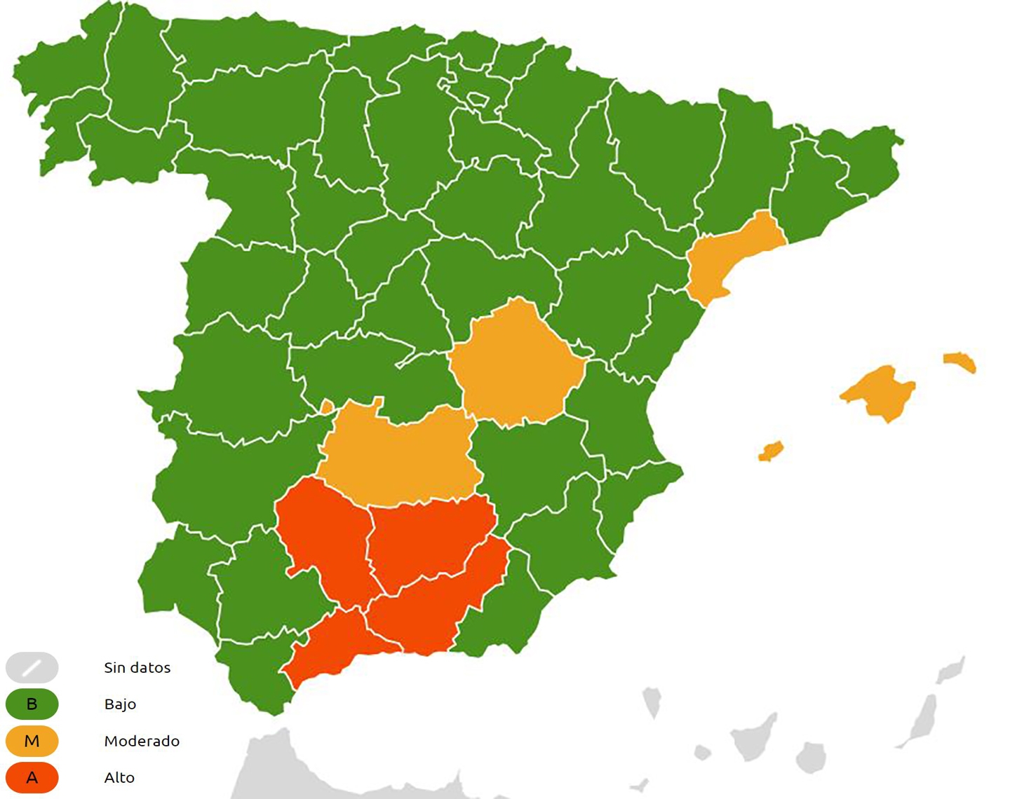 Por otro lado, las altas temperaturas de los últimos días han agotado las flores de las ortigas y otras plantas con pelos urticantes de su familia, por lo que, aunque la floración continúa, los niveles de polen serán bajos y los síntomas que puedan recibir las personas alérgicas a estas plantas estarán más relacionados con el contacto o cercanía con la propia planta que con los niveles de polen en el aire.