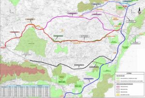 Dada la baja demanda estimada, el estudio propone la construcción de una vía única, suficiente para gestionar los flujos de tráfico previstos. Asimismo, se señala que, debido a la topografía, el Corredor Central, que coincide en gran medida con la antigua línea, sería el más adecuado para una línea de tráfico mixto. El Corredor Norte, por su parte, se considera más complejo por su terreno accidentado, mientras que el Corredor Sur presenta aún mayores desafíos orográficos, lo que requeriría túneles de gran longitud.