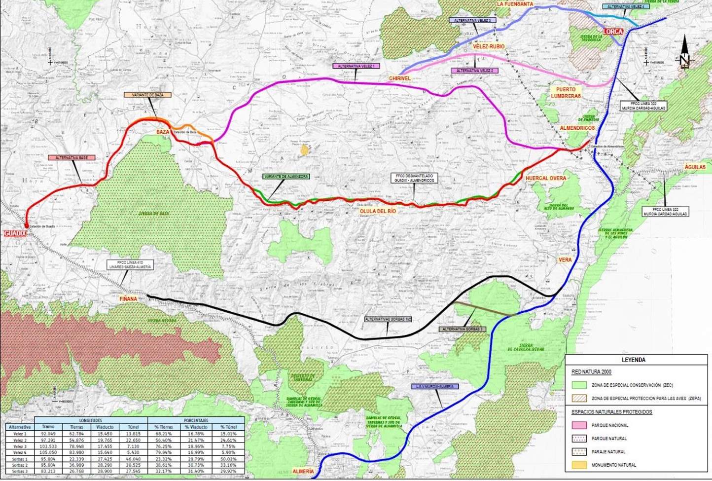 La memoria del estudio, fechada en noviembre de 2023, destaca que ninguna de las alternativas es viable desde un punto de vista socioeconómico. De llevarse a cabo, las obras podrían comenzar en 2032, con la línea en funcionamiento hacia 2035. Se estudiaron cuatro alternativas que cubren diferentes corredores con el fin de conectar Andalucía con el Levante peninsular, a través de los corredores norte, central y sur.