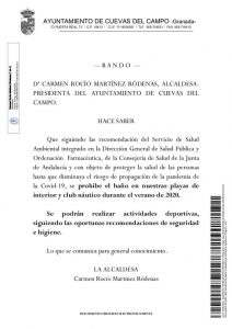 La alcaldesa cueveña argumentaba su decisión afirmando que “siguiendo la recomendación del Servicio de Salud Ambiental integrado en la Dirección General de Salud Pública y Ordenación Farmacéutica, de la Consejería de Salud de la Junta de Andalucía y con objeto de proteger la salud de las personas hasta que disminuya el riesgo de propagación de la pandemia de la Covid-19, se prohíbe el baño en nuestra playas de interior y club náutico durante el verano de 2020”.