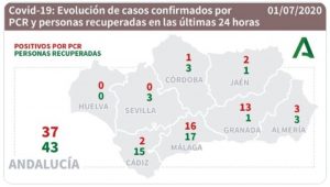 Además, las cifras del coronavirus en Granada siguen subiendo. Los 7 casos nuevos del martes casi se han doblado con la aparición de 13 positivos PCR más, que hoy se verá en cuánto aumentan los afectados por los brotes.