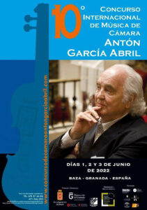 Baza acoge del 1 al 3 de junio la X edición del Concurso Internacional de Música de Cámara “Antón García Abril”. Baza acoge del 1 al 3 de junio la X edición del Concurso Internacional de Música de Cámara “Antón Garcia Abril”, uno de los concursos internacionales de esta especialidad más consolidados y de mayor prestigio en el ámbito de la música clásica en nuestro país. El evento cuenta con la financiación del Ayuntamiento de Baza y la Diputación de Granada, que han apoyado económicamente la iniciativa desde sus inicios, y actualmente cuenta además con la colaboración de otras empresas y entidades.