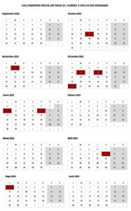 Aprobado el calendario escolar 2022-23 en Granada, con inicio de clases el 12 de septiembre y dos puentes para el día de Todos los Santos y el Día de Andalucía. La Delegación Provincial de la Consejería de Educación y Deporte de la Junta de Andalucía en Granada hacía pública la resolución que diseña el calendario escolar para el curso 2022-23, el cual dará inicio el día 12 de septiembre para el alumnado de Primaria , mientras que en la Secundaria dará comienzo el curso el jueves 15 de septiembre y el 20 lo hará en las escuelas de idiomas y enseñanzas artísticas superiores. Antes, estarán funcionando las clases del primer ciclo de Infantil, que se abrirán el primer día de ese mismo mes.