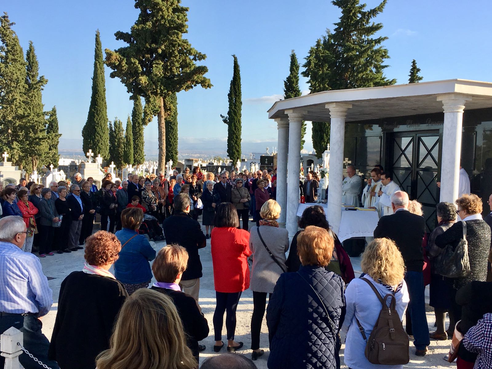 Por otro lado, en la mañana de ayer volvía a realizarse una Eucaristía concelebrada por los sacerdotes de nuestra ciudad, a la que asistieron un par de centenares de personas que habían acudido a visitar a los suyos y aprovecharon así la ocasión de dedicarles esta Santa Misa tras la que tuvo lugar un responso.