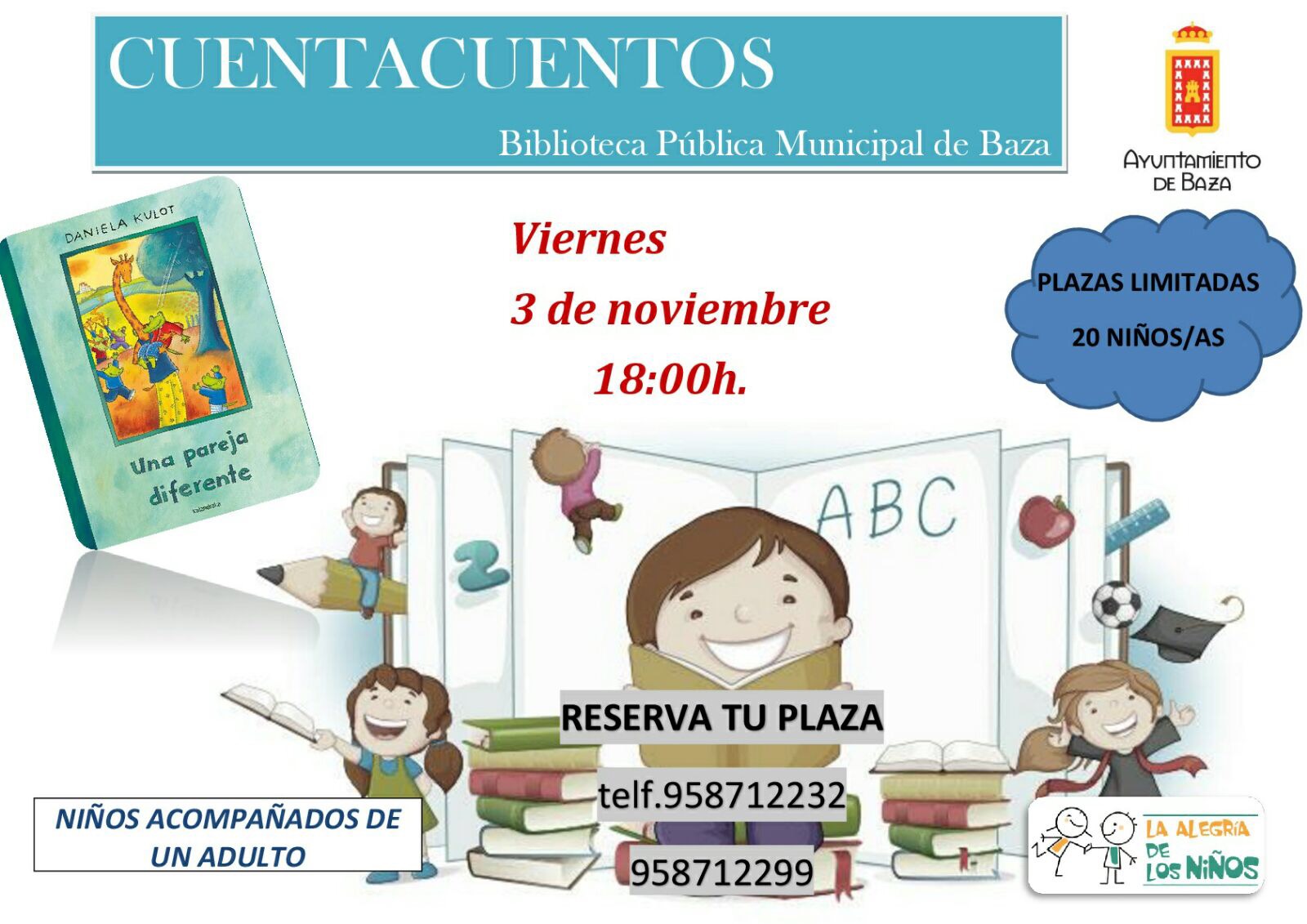 Esta semana se celebrarán el viernes 3 de noviembre, a las seis de la tarde, en el espacio “Bebeteca”, por lo que será preciso realizar preinscripción previa en la propia biblioteca, ya que el espacio es limitado.