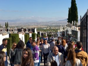 suele ser el día en que numerosas personas se acercan a visitar a familiares y amigos cuyos restos reposan en el camposanto bastetano, en la víspera del Día de los Difuntos que se celebra hoy.