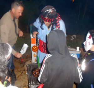 el parque Luis Cobos, aunando esta celebración foránea con productos típicos de esta zona como es el caso de castañas, boniatos y patatas asadas, «flores» de maíz, caquis y granadas, o los tradicionales pasteles caseros de calabaza, todo ello aportado solidariamente por las distintas familias.
