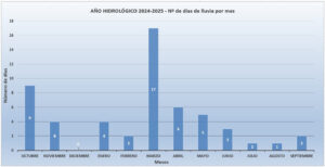 El total de precipitaciones se distribuyó a lo largo de 53 días de lluvia, con un patrón muy irregular que caracteriza cada vez más el clima en la zona: periodos prolongados de sequía seguidos de episodios de lluvias intensas concentradas en pocos días.