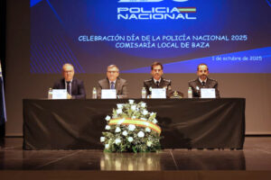 Montilla ha resaltado que los 57 hombres y mujeres que forman parte de la Comisaría de Baza, 52 agentes y 5 pertenecientes a los cuerpos generales, “desempeñan un servicio esencial no solo en la lucha contra el crimen organizado, el narcotráfico o la ciberdelincuencia, sino también en la protección de víctimas de violencia de género, la seguridad en eventos multitudinarios como el Cascamorras o la gestión diaria de documentación como DNI y pasaportes”.