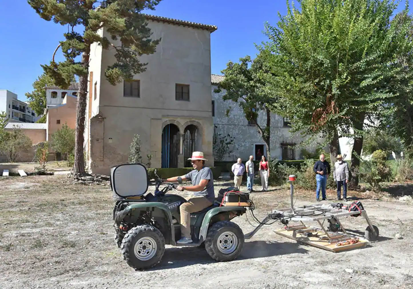 Al mismo tiempo, el profesor del departamento de Prehistoria de la Universidad de Granada, José Antonio Peña, junto con algunos ayudantes, han realizado una prospección geofísica del suelo del palacio y de los jardines, para conocer lo que hay debajo de lo que se ve a simple vista. Se ha empleado la técnica del georradar, tanto con herramientas de pequeño tamaño para los espacios más reducidos, como otras de mayor volumen para los espacios abiertos.