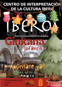 Como novedad, el CICI acoge el próximo martes, 27 de diciembre, a las 10.30h una gymkana infantil que acercará a los más pequeños a la cultura íbera, nuestra civilización antes de Roma. Es una propuesta del arqueólogo Andrés Pérez en la que colabora el Ayuntamiento. Las inscripciones se pueden formalizar en el 642 96 75 36 con un precio de 3 euros.