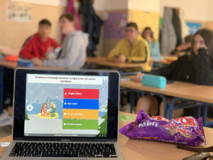 La dinámica ha sido sencilla. Cada clase formaba su propio equipo, para representar a su localidad, y mediante esta herramienta educativa los alumnos contestaban a una serie de preguntas a través de sus dispositivos, compitiendo sanamente y en un ambiente festivo.