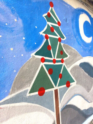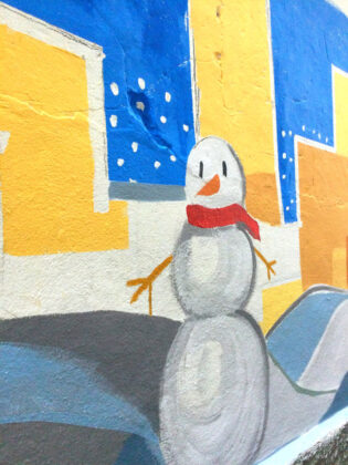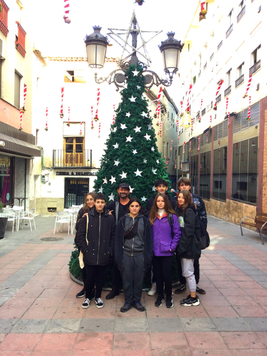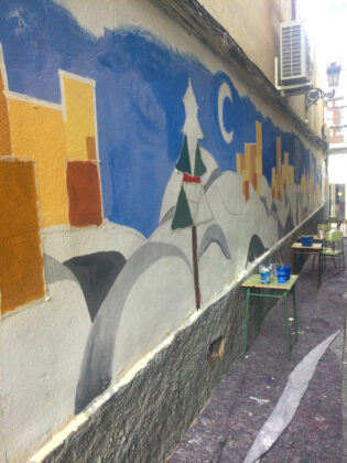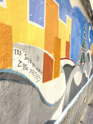 Y ha sido precisamente en este callejón donde se ha producido un cambio de decoración con la instalación de un precioso mural navideño que ha pintado el alumnado de 2º de Bachillerato de Artes del IES José de Mora. Los alumnos, dirigidos por el profesor de artes plásticas Ángel Montero, el mismo que diseñó y creó las piezas de la plaza Pablo Picasso bastetana, han dedicado dos jornadas para hacer realidad este proyecto.