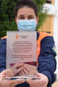Ha sido durante un sencillo acto en el que el alcalde de Baza, Pedro Fernández, en nombre de toda la corporación municipal ha entregado al nuevo jefe de la agrupación de voluntariado, David Martínez, una placa en la que se hace constar “el agradecimiento a la labor y contribución de los hombres y mujeres de la agrupación bastetana de Protección Civil que, de forma completamente altruista, han estado en primera línea de lucha contra el COVID- 19.