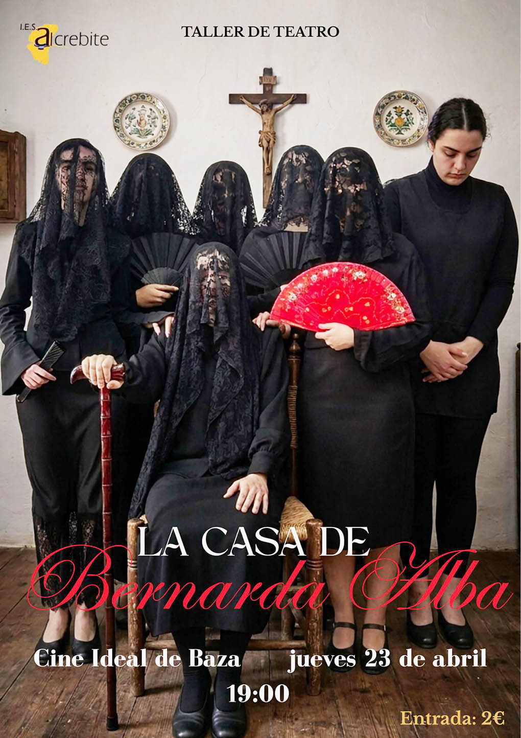 El plato fuerte de la jornada de hoy, 23 de abril a las 10:30h., llega de la mano del teatro. Alumnos del IES “Pedro Jiménez Montoya” suben al escenario del Teatro Ideal para representar la obra “La casa de Bernarda Alba”, del dramaturgo Federico García Lorca. Las funciones se desarrollan en horario de mañana y tarde, en una apuesta por acercar los clásicos de la literatura española al público local a través del talento joven. La representación de esta obra, una de las más emblemáticas del teatro lorquiano, supone uno de los momentos más destacados de la programación cultural de esta semana.