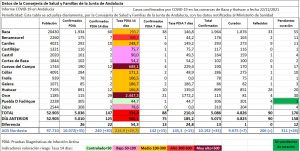 En cuanto al resto de municipios con contagios, Castril añade otro contagio más y pasa a tener 2 contagiados PDIA que suponen una tasa a 14 días de 99,0. A 7 días vuelve a tener un confirmado PDIA y una tasa de 49,5. También Cuevas del Campo agrega otro contagiado más, aunque mantiene la misma tasa a 14 días y baja la de 7 días a 229,4. Cúllar suma otro contagio y aumenta su tasa de incidencia a 14 días a 171,1, rebajando la de 7 días a 48,9, al tener un contagiado PDIA menos. Galera sube también un confirmado más, aumentando su tasa de incidencia a 186,7, a 7 y a 14 días. Por último, Huéscar añade otro contagio más, manteniendo la tasa a 14 días y rebajando en un caso la tasa a 7 días que pasa a ser de139,0.