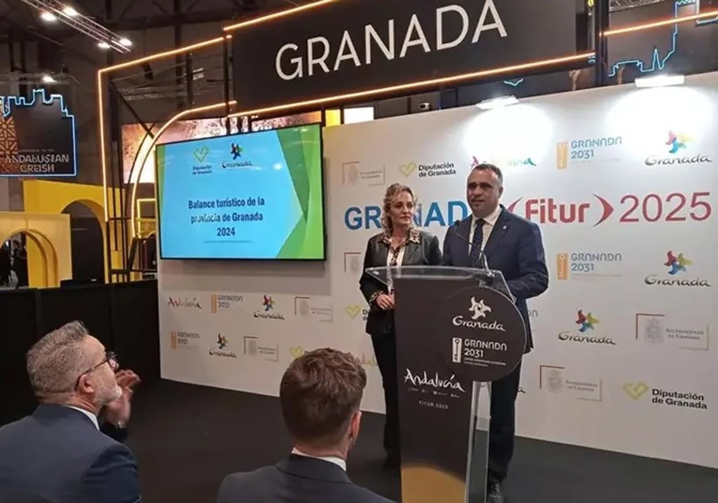 La provincia de Granada cierra 2024 con un crecimiento del 7,49% en pernoctaciones y un aumento del 4,40% en viajeros. La provincia de Granada registró un crecimiento significativo en el sector turístico durante 2024, según los datos preliminares difundidos por el presidente de la Diputación, Francis Rodríguez, en el marco de la 45ª edición de FITUR. Las cifras reflejan un incremento del 7,49% en las pernoctaciones, alcanzando un total de 5.962.984, y un aumento del 4,40% en el número de viajeros, que sumaron 2.874.072.