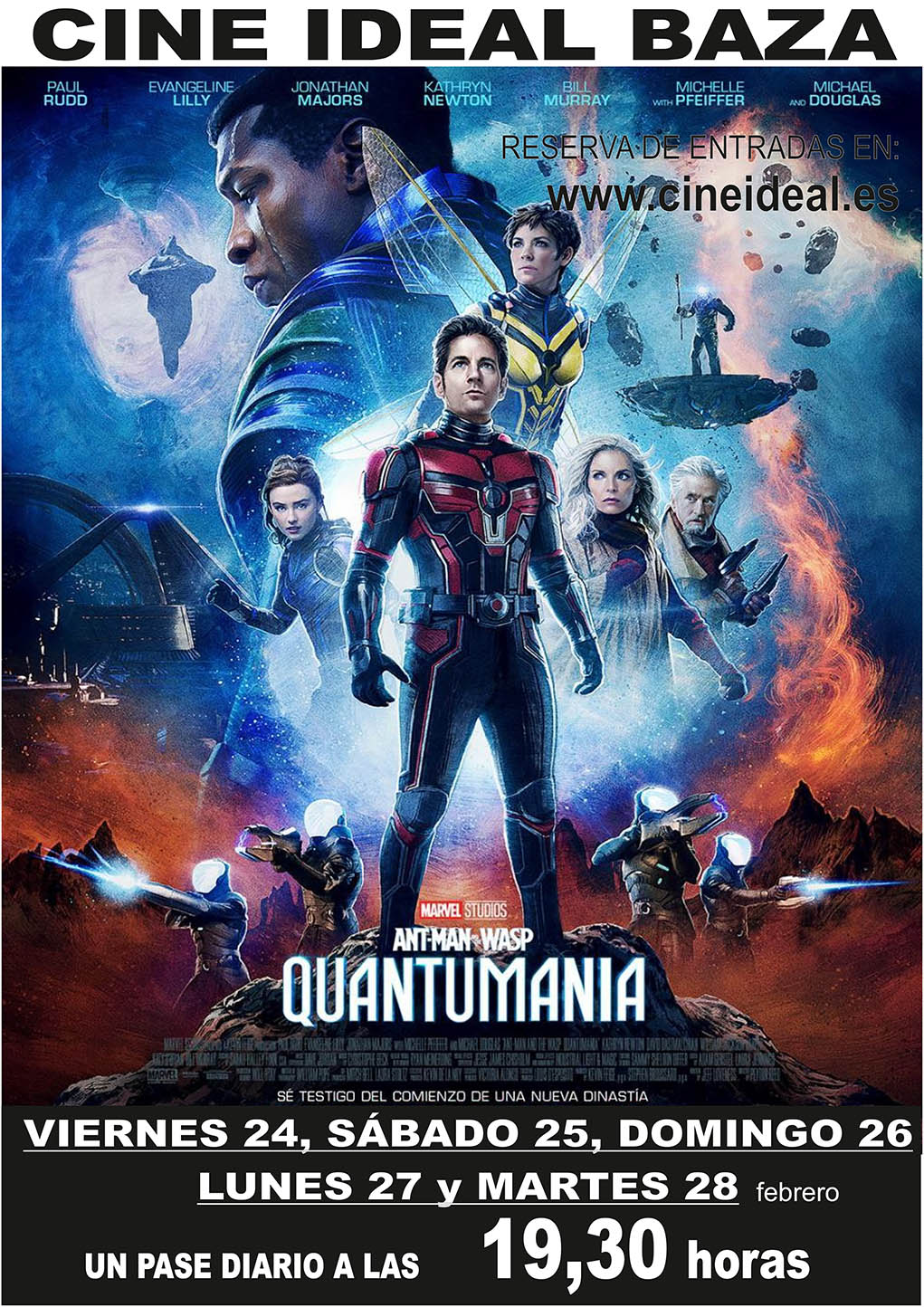 Este fin de semana, el Cine Ideal de Baza presenta la última superproducción  de Marvel Studios: Ant-Man y la Avispa: Quantumania. Una película que se proyectará desde el viernes 24 al martes 28 de febrero, en una única sesión diaria, a las 19,30 horas y para la que se puede utilizar el servicio de reserva de entradas desde la web www.cineideal.es.