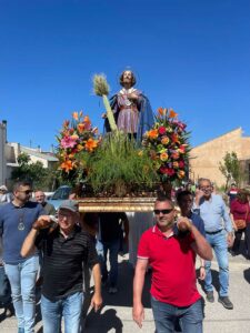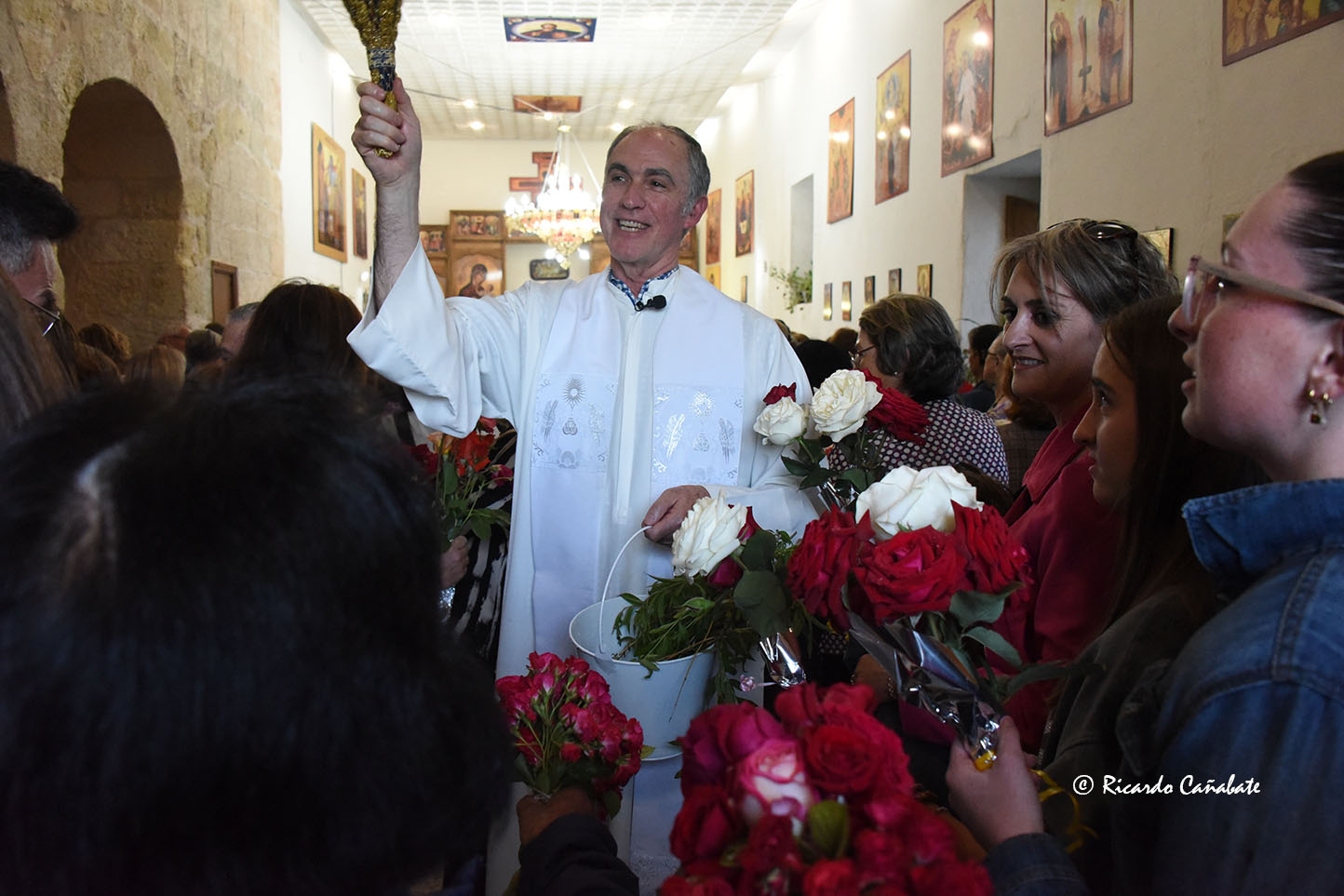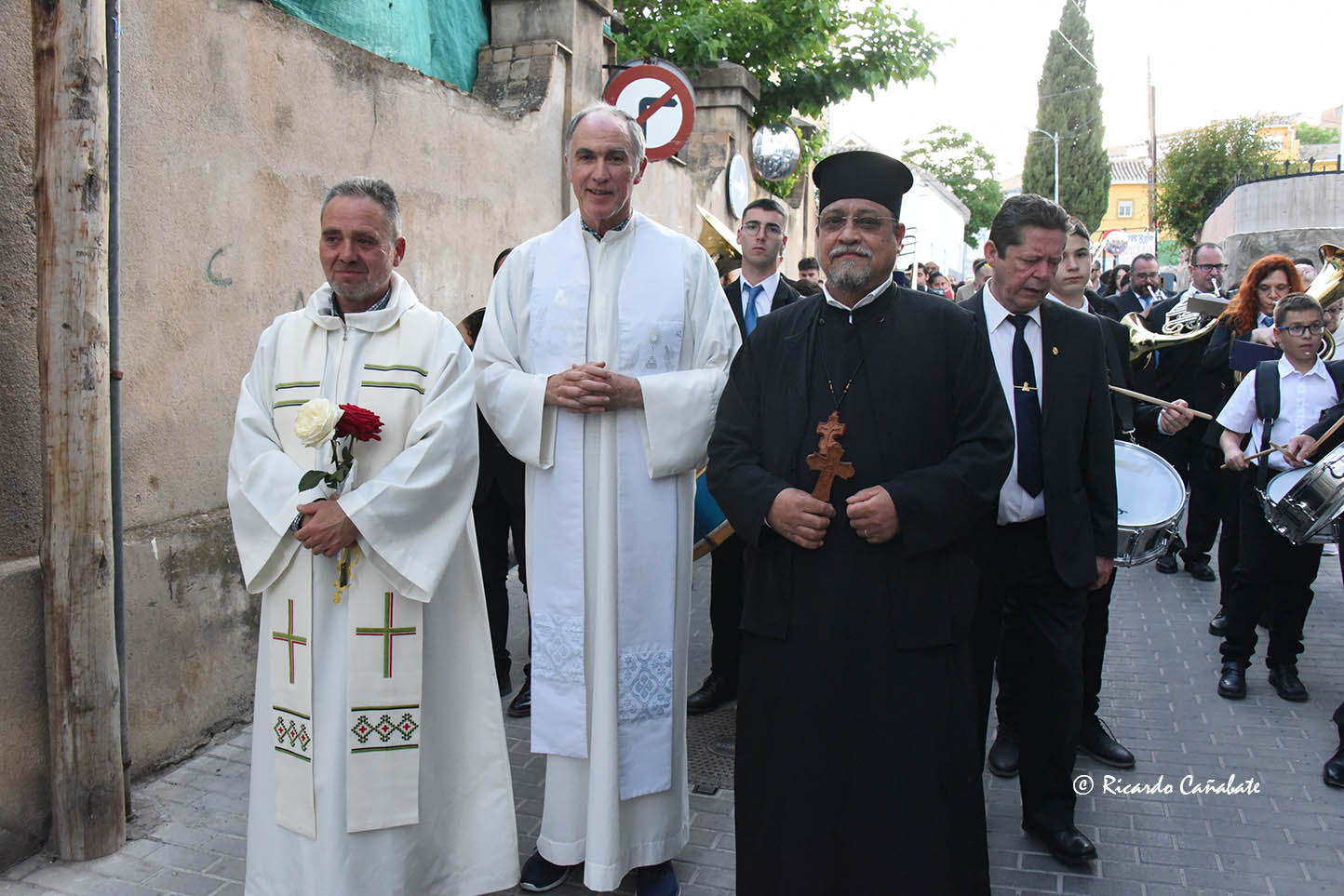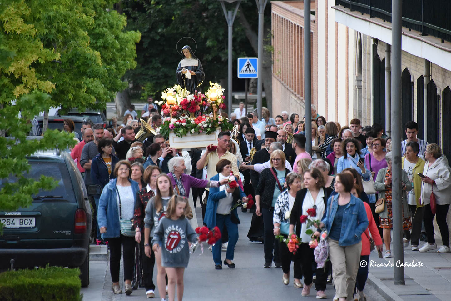 Una placeta que estaba muy concurrida y que, tras la bendición de las flores, con gran presencia de las simbólicas rosas, recibía a Santa Rita sobre unas andas bellamente adornadas y sobre los hombros de un buen grupo de mujeres que se hicieron cargo de los primeros relevos, mientras la procesión cruzaba la Ronda de Baza y se adentraba por una calle del Chorrillo que se vio ocupada, de punta a punta, por los fieles que iban tras la imagen, mientras sonaban los acordes de la asociación Banda Municipal de Música de Baza, que recibieron a la imagen con los sones del himno nacional.