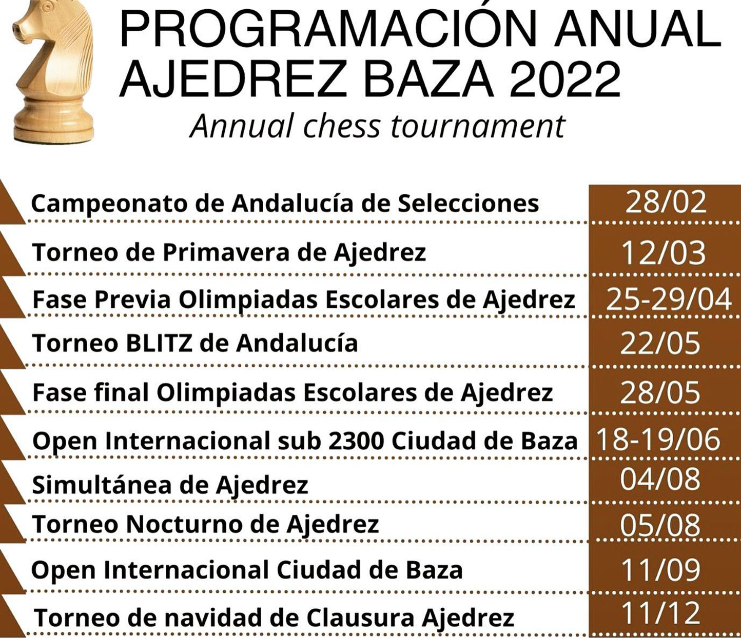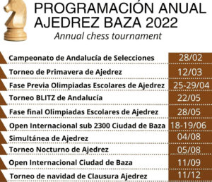El apoyo de la Federación Andaluza de Ajedrez, presidida por Javier Rubio, ha hecho posible la elección de Baza como sede para organizar varios eventos de su calendario, de forma que se da un importante salto en la organización de citas de mayor tamaño y repercusión, lo que permitirá que los mejores ajedrecistas de Andalucía jueguen en Baza.