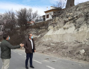 Enrique Barchino se reunió con el alcalde de este municipio, José Ramón Martínez, junto al que pudo visitar las obras que se realizan para aplicar medidas de contención en la zona afectada por el derrumbe.