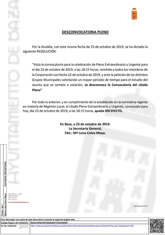 Desconvocado el Pleno Extraordinario Municipal que había de tratar del aumento de tasas. La sesión plenaria anunciada para la tarde de ayer, en la que se debía haber tratado el aumento de tasas municipales, no llegó a celebrarse por haber sido desconvocada esta cita, según la resolución de la Alcaldía en la que se habla de la “petición de los distintos grupos municipales solicitando un mayor periodo de tiempo para el estudio del asunto que se somete a votación”.