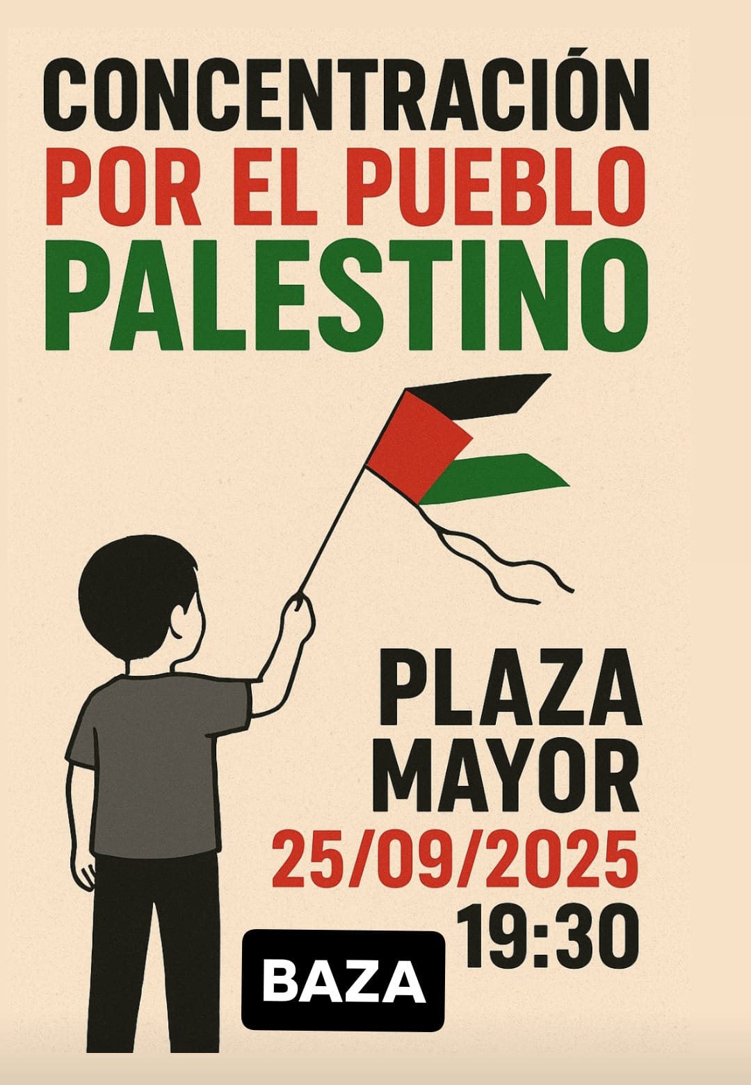 IU y PSOE defenderán esta tarde una moción en defensa del pueblo palestino en el Pleno del Ayuntamiento de Baza y celebrarán una concentración a las 19,30 h. en la Plaza Mayor. La situación en Gaza ha escalado hasta niveles insoportables y exige una respuesta inmediata y sin excusas, por lo que los grupos municipales de PSOE e IU en el Ayuntamiento de Baza han presentado una moción conjunta que se debatirá en el Pleno de hoy jueves 25 de septiembre con el título “En defensa de la paz, la justicia y la dignidad humana en Gaza.