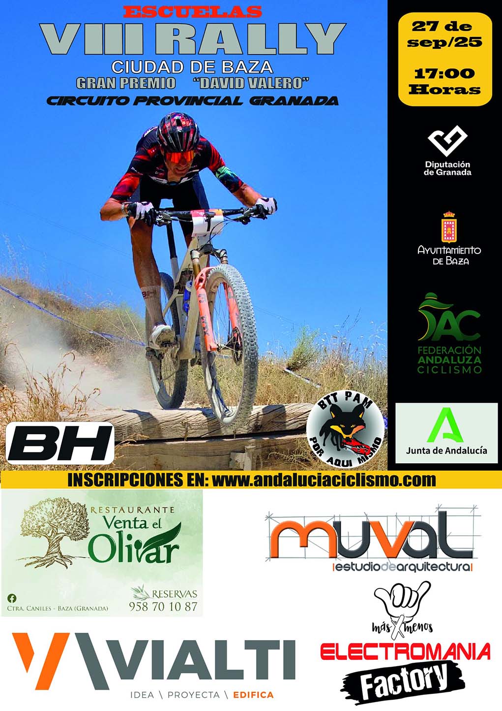 El Circuito Provincial BTT Rally enfila su recta final con el ‘VIII Rally Ciudad de Baza–GP David Valero’ que se disputa este sábado en nuestra ciudad. El Circuito Provincial BTT Rally de la Diputación de Granada, en sus categorías de escuelas, entra en la fase decisiva con una cita especial en el calendario: el ‘VIII Rally Ciudad de Baza–Gran Premio David Valero’, que se celebrará este viernes a partir de las 17:00 horas en el circuito de la Fuensanta.