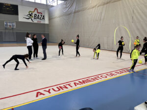 El Ayuntamiento adquiere un tapiz oficial para las modalidades deportivas de gimnasia rítmica y estética de grupos. La gimnasia rítmica cuenta en Baza, desde esta semana, con una nueva superficie de entrenamiento: un tapiz oficial para las modalidades de gimnasia rítmica y estética de grupos, con el que se espera que sigan creciendo tanto los resultados como la promoción de este deporte que impulsa el club Beatriz Dancing.
