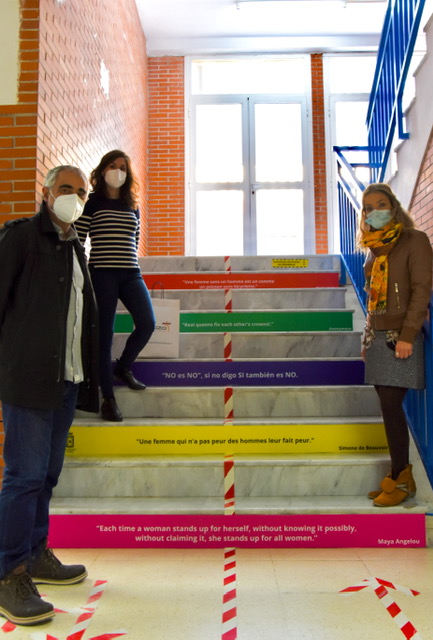 Los centros de Secundaria bastetanos, la Escuela Oficial de Idiomas y la Biblioteca Municipal se sumaron a los actos del 25-N. Esta semana en los centros de secundaria y en la Escuela Oficial de Idiomas se han colocado mensajes para ayudar al alumnado a identificar la violencia de género y a eliminar estereotipos machistas que pueden derivar en agresiones. Son diez mensajes diferentes que se pegarán en lugares visibles (escaleras y accesos) y que tienen un diseño de colores llamativos para atraer la atención de los estudiantes.