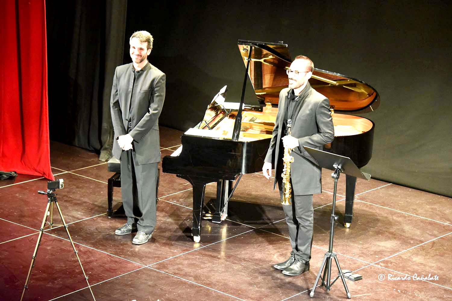 A continuación, se dio paso al concierto del Dúo Ludos Tonalis, integrado por David Pons y Manuel Jesús Corbacho, quienes vencieron en la edición del 2017 de este certamen bastetano. Ofrecieron una nueva versión para saxofón y piano de la Sonata de Sienna de Antón García Abril y la obra de Piet Swerts “Klonos”, terminando con un bis de “No por amor, no por tristeza” del mismo García Abril que felicitó cariñosamente a este dúo que fue fuertemente aplaudido tras sus actuaciones.
