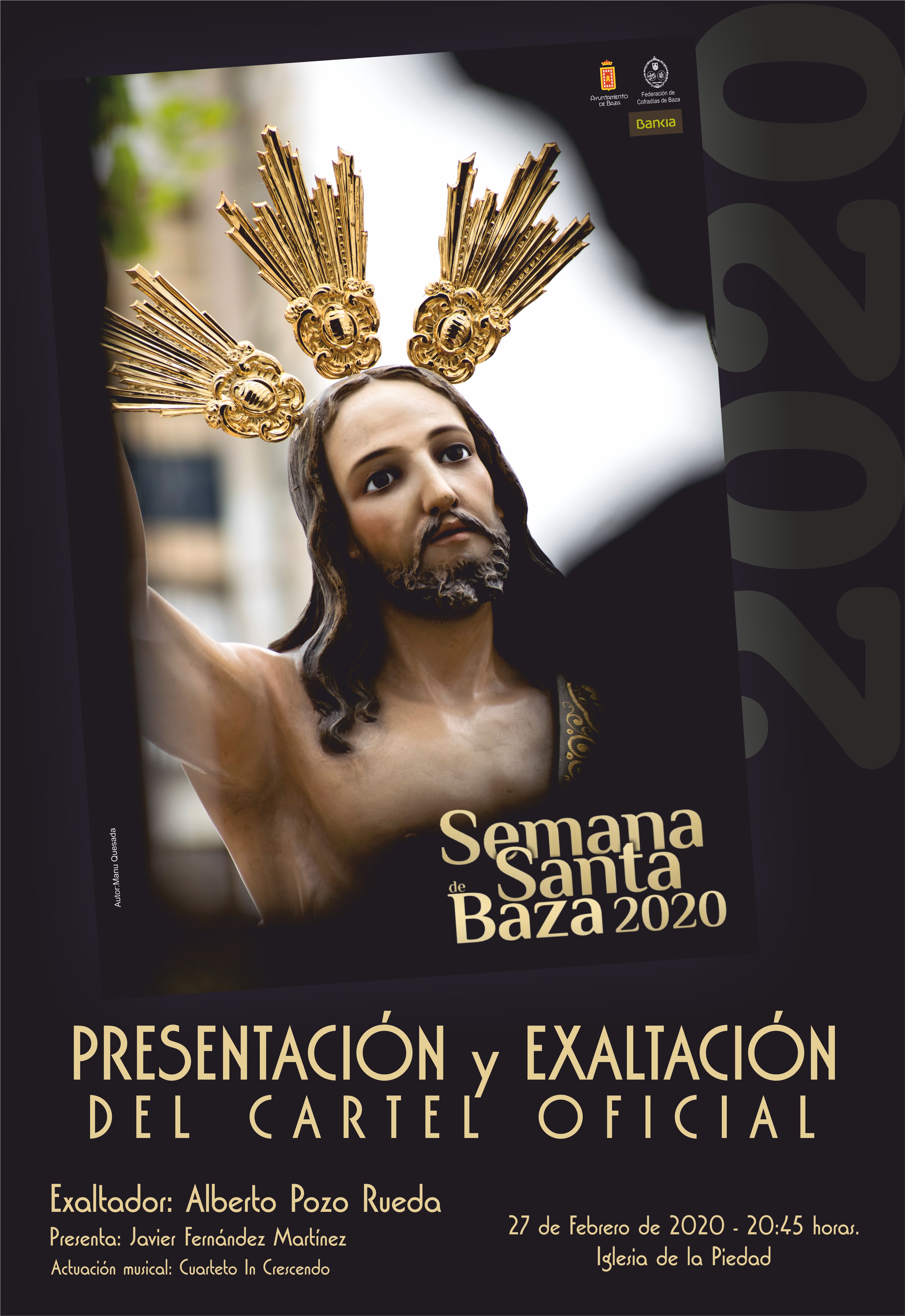 Hoy jueves, día 27 de febrero y a las 20:45 horas, en la Iglesia de la Merced tendrá lugar la presentación y exaltación del cartel oficial de nuestra Semana Mayor, en un acto que será presentado por Javier Fernández, de Onda Cero Baza, y que está organizado por la Federación de Cofradías, en colaboración con la Cofradía de la Soledad, cofradía a que pertenece la imagen al cartel oficial 2020, que es la fotografía ganadora del concurso fotográfico organizado por esta Federación, en el que se alzó como ganador Manu Quesada, con una instantánea del Resucitado.