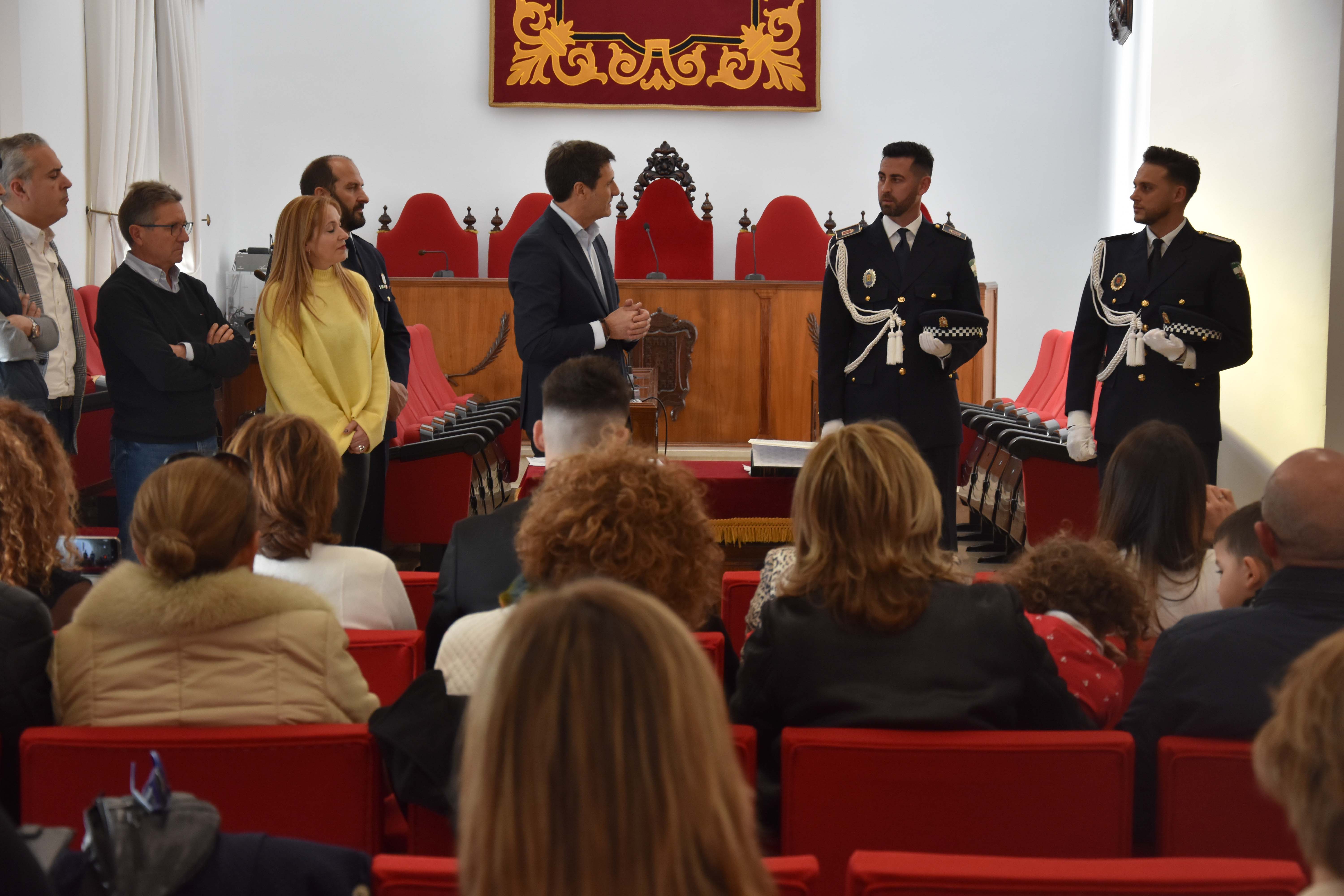 Dos nuevos policías locales tomaron ayer posesión de su plaza en Baza. Dos nuevos agentes de policía local tomaban posesión, en la mañana de ayer, de su plaza como agentes del cuerpo de seguridad municipal de Baza, tras superar las pruebas de oposición libre y pasar el periodo de formación en la Escuela de Seguridad Pública de Andalucía.