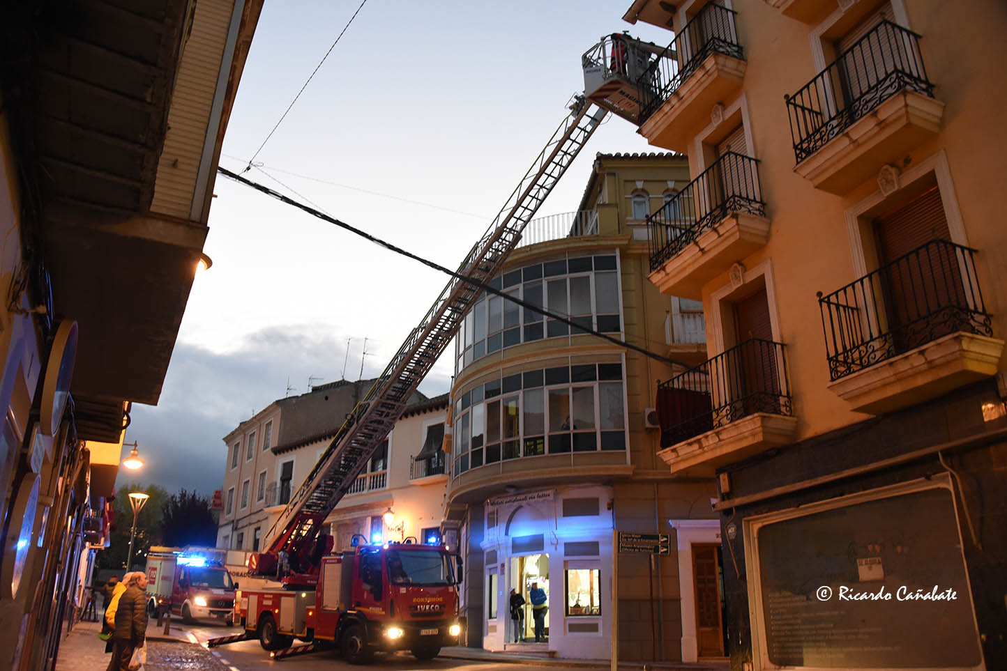De hecho, pudimos ser testigos de una de las intervenciones que realizaron los bomberos bastetanos, por causa del viento, cuando tuvieron que acudir con dos vehículos, uno de ellos con la cesta para acceder a lugares ubicados en altura, como fue el caso del edificio que hace esquina en el inicio de la calle Alamillos con la calle Alhóndiga.