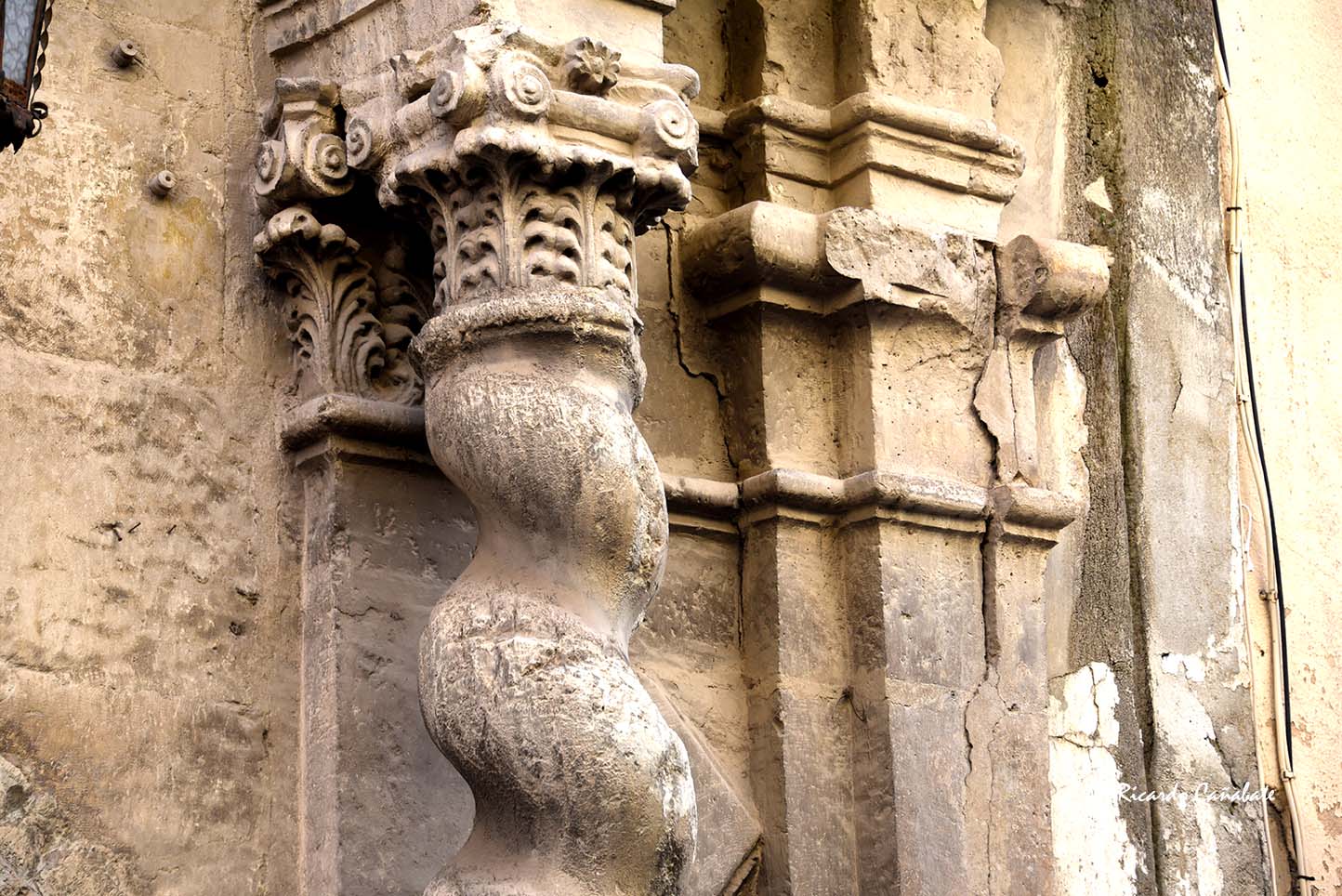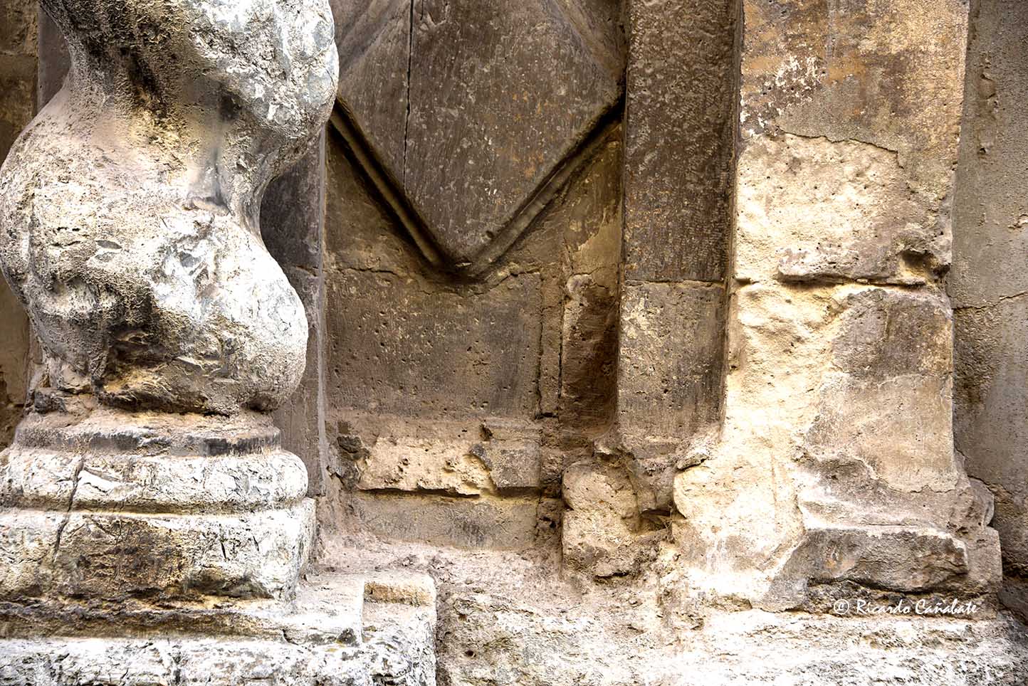 La fachada de la Iglesia de los dolores está afectada, entendemos nosotros, del conocido como “mal de piedra” el cual lleva años extendiéndose sin que nunca se haya afrontado este problema que está terminando por convertir en una especie de polvo de talco lo que en su tiempo fue una obra de piedra. Además, se trata de una fachada que, literalmente, se está destrozando a cada día que pasa, hasta el punto de que no es raro pasar por allí y ver como caen otros trozos de elementos del pórtico, cuyas fracturas son perfectamente visibles, como son visibles las numerosas grietas que se siguen agrandando y agravando con el tiempo, sin que se nunca se haya afrontado este asunto con ánimo de culminar con su reparación.