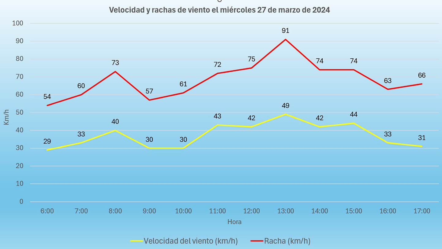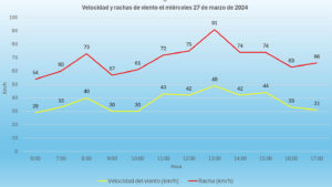 Rachas de hasta 92 km/h se produjeron ayer en Baza, lo que motivó numerosas salidas de los bomberos bastetanos para evitar riesgos y aportar soluciones. Como veníamos comentando, la alerta decretada por la Agencia Estatal de Meteorología para el día de ayer en Baza no incluía la presencia de lluvias, dando un respiro a quienes temían ese inconveniente, pero sí que añadió un elemento como el viento, que se dejó notar en extremo y no ya solo en la procesión del Miércoles Santo, sino en el devenir de la vida ciudadana, causando inconvenientes de diversa tipología.