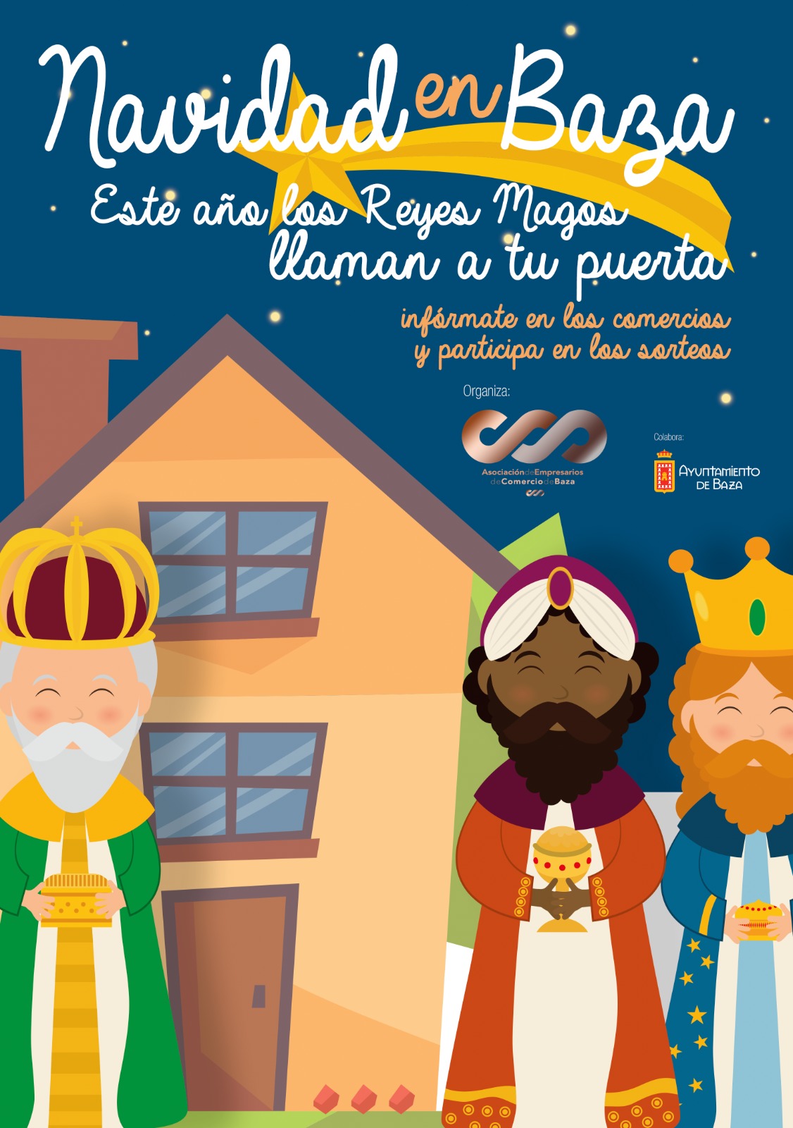 Tanto la Asociación de Comercio de Baza y el Ayuntamiento de la localidad son conscientes de la situación actual que estamos viviendo. No se pueden hacer actividades en la calle, por lo que nos hemos reinventado y hemos creado la campaña «Los Reyes Magos llaman a tu puerta». En esta campaña, las compras que se realicen en los comercios asociados (que tendrán un distintivo) ofrecerán al cliente un servicio en el que los Reyes Magos entregarán tus regalos a domicilio la tarde del día 5 de enero. De esta manera favorecemos las compras en los comercios de Baza.