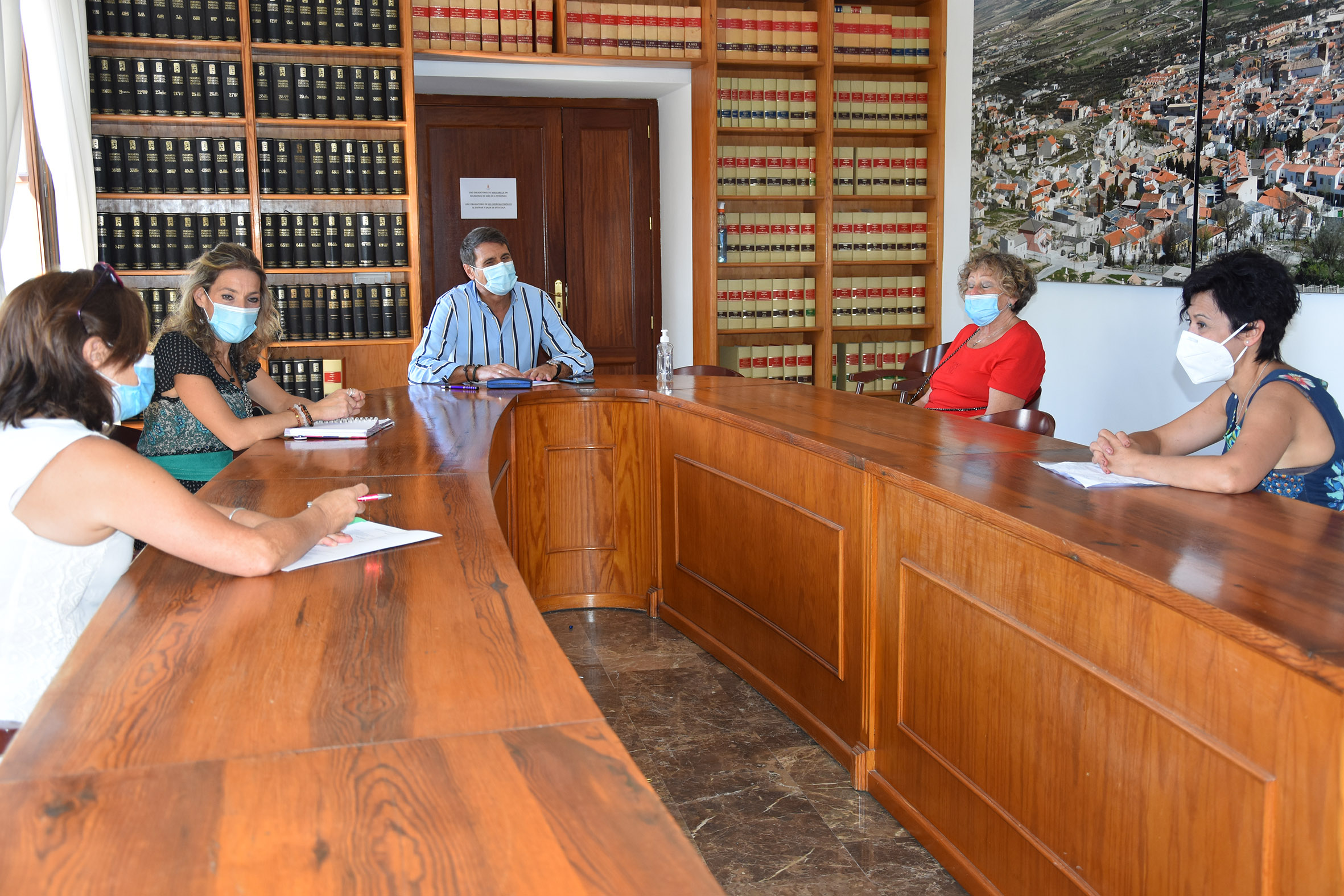 El alcalde de Baza, Pedro Fernández, y la presidenta del área municipal de Igualdad y Bienestar, Mariana Palma, reciben oficialmente a la nueva directiva de la asociación Ad- Hoc. La nueva presidenta, Pepi Rodríguez, acompañada de la secretaria del colectivo, Concepción Vélez, y de la directora de programas del mismo y coordinadora del Centro de Tratamiento de Adicciones, Ana Guirado, han mantenido un encuentro con los munícipes en los que, además de realizar las presentaciones, han repasado la actividad de la asociación y del Centro de Tratamiento en lo que va de año y durante la pandemia.