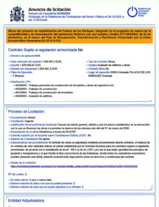 Las empresas interesadas podrán presentar sus ofertas hasta el 13 de noviembre de 2025, y el expediente completo puede consultarse en el siguiente enlace oficial con el detalle de la licitación en la Plataforma de Contratación del Estado.