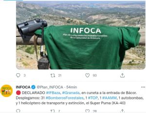 Continúa la época de alto riesgo de incendios cuando se produce uno en Bácor que nos recuerda que no se puede bajar la guardia. Un incendio que se daba a conocer desde el propio Infoca, a través de Twitter, avisando de un incendio forestal en el término municipal de Baza, aunque ubicado en una cuneta de la entrada de la Entidad Local Autónoma, la cual pertenece a la comarca de Guadix.